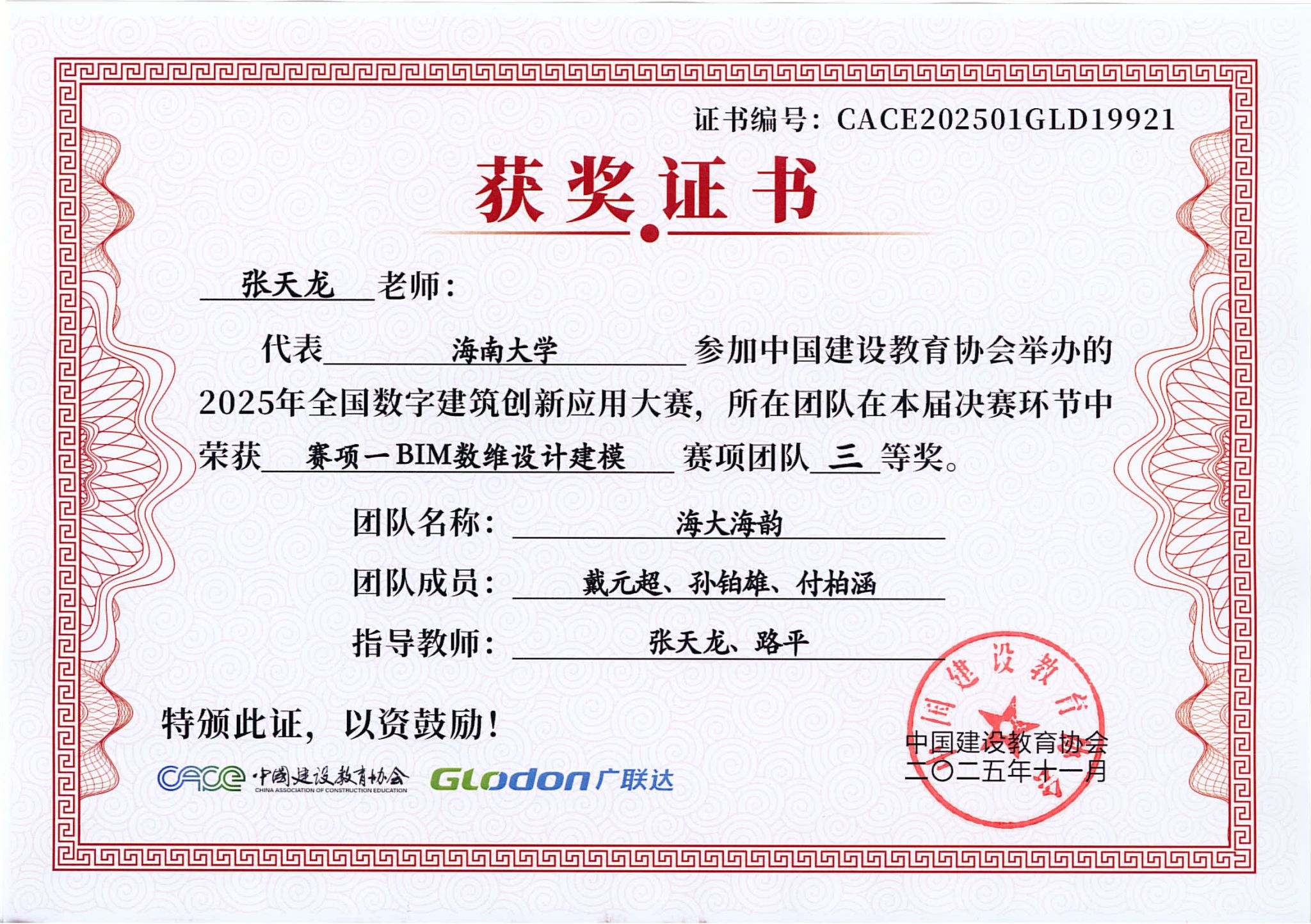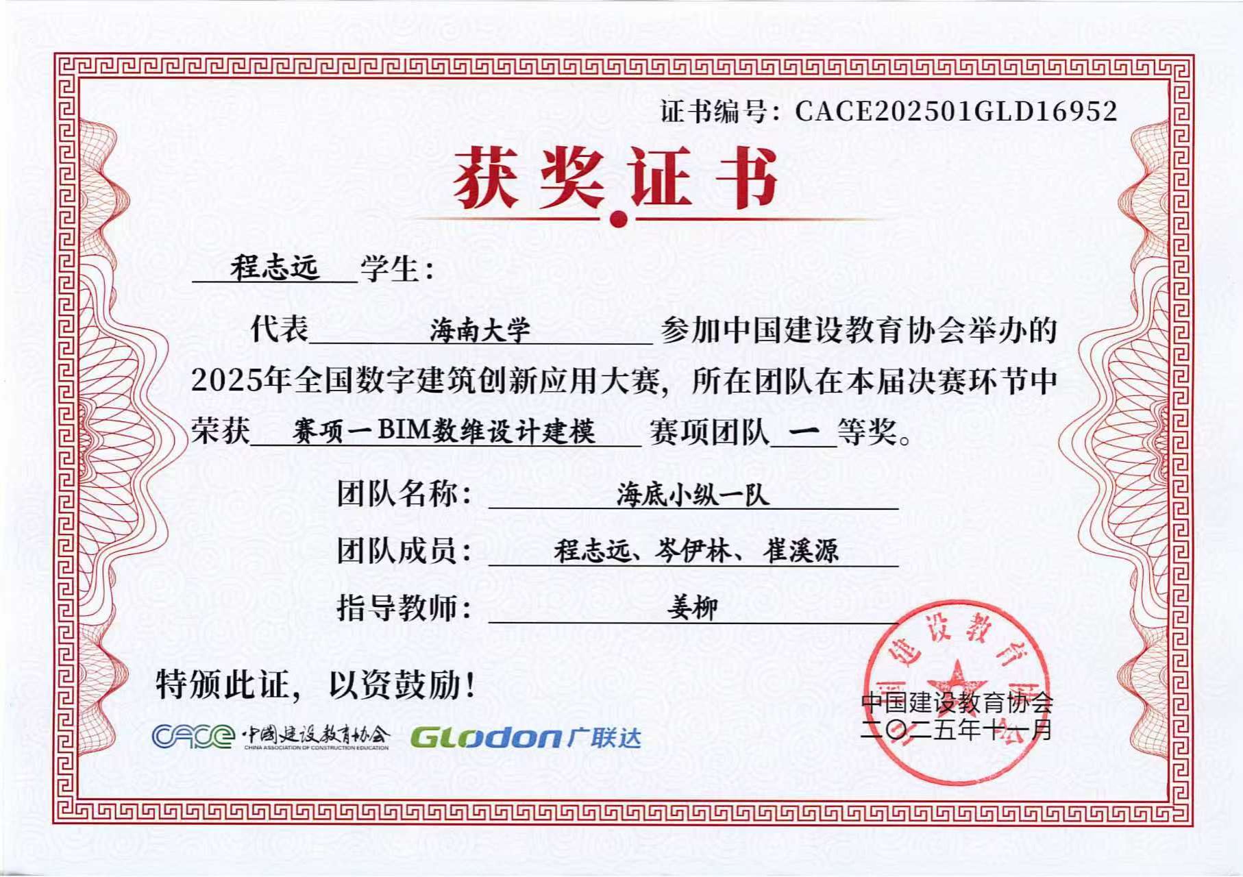 2025年11月3日,2025年全国数字建筑创新应用大赛总决赛成绩揭晓,由sunbetBIM协会选送的3支学生参赛队伍全部进入全国总决赛,并且斩获全国总决赛一等奖1项、二等奖1项和三等奖1项,取得协会历史最好成绩!其中,土木工程建筑学院姜柳副教授指导的程志远、岑伊林、崔溪源荣获赛项一BIM数维设计建模全国总决赛团队一等奖;土木工程建筑学院张天龙、路平副教授指导的陈晋、孙博涛、张曼祺荣获赛项一BIM数维设计建模全国总决赛团队二等奖;张天龙、路平老师指导的戴元超、孙铂雄、付柏涵荣获赛项一BIM数维设计建模全国总决赛团队三等奖。