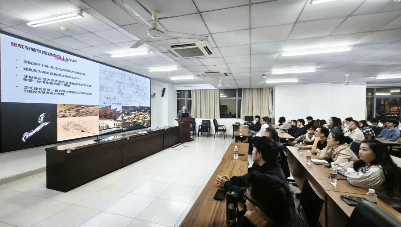 范悦教授从当代建筑与城市新挑战、中日建筑发展差异、建筑教育体系创新三方面展开分享,剖析了中国建造传统的创造性价值、数字技术的文化表达等核心命题,提出建筑学科需以设计实践、研究、工作坊为核心构建理论实践闭环。同时,他介绍了深圳大学建筑系“一横多纵”教学架构与“无界之城”办学理念,分享了从基础认知到未来城市课题研发的分层教学模式及科研平台成果。